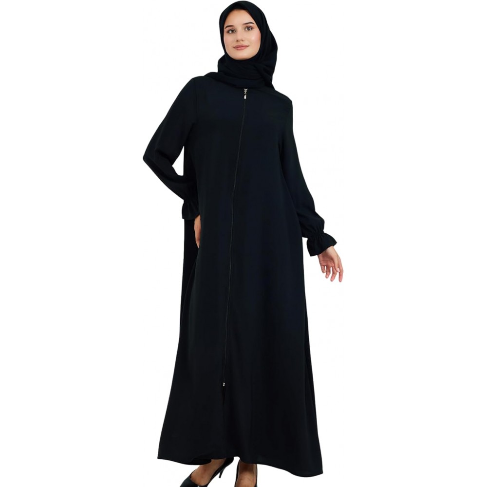 - Experience timeless elegance with our zipper front long sleeve abaya, designed for Muslim women who seek both style and modesty.