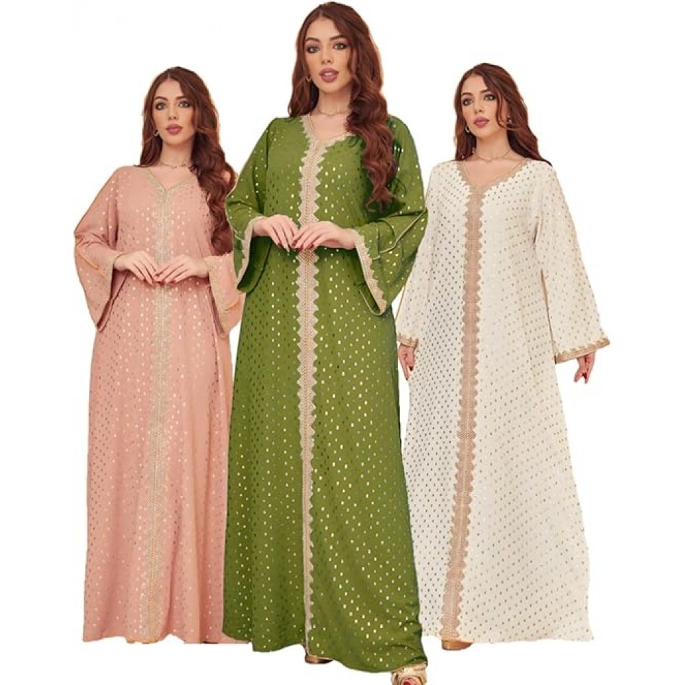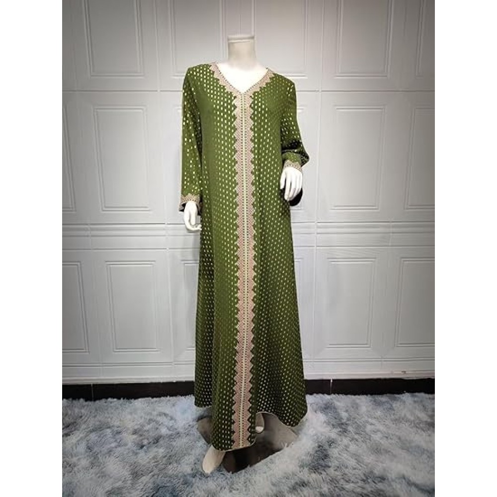 Women's Muslim Islamic Abaya Dress Elegant V Neck Bronzing Kaftan Dress Full Length Prayer Clothes Evening Gowns