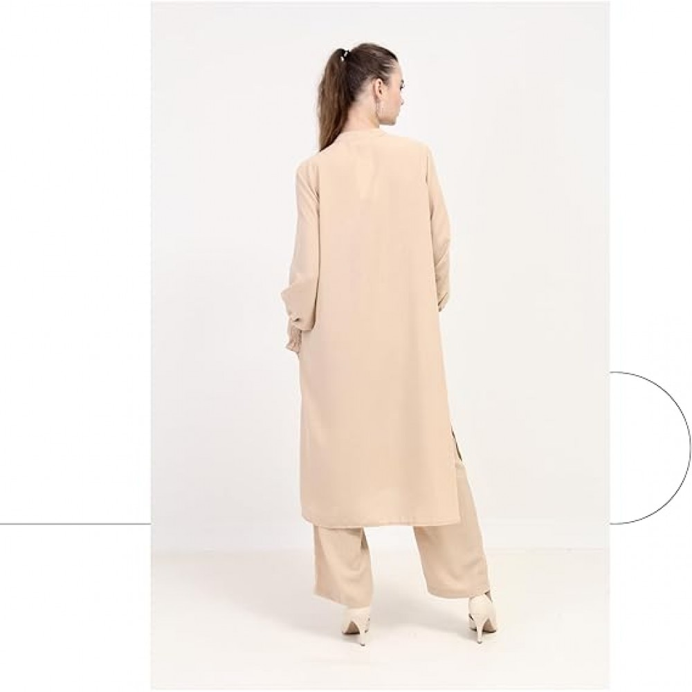 - Stylish Ensemble: This linen outfit set features a trendy design, combining a long sleeve top with matching leg pants for a fashionable and coordinated look.