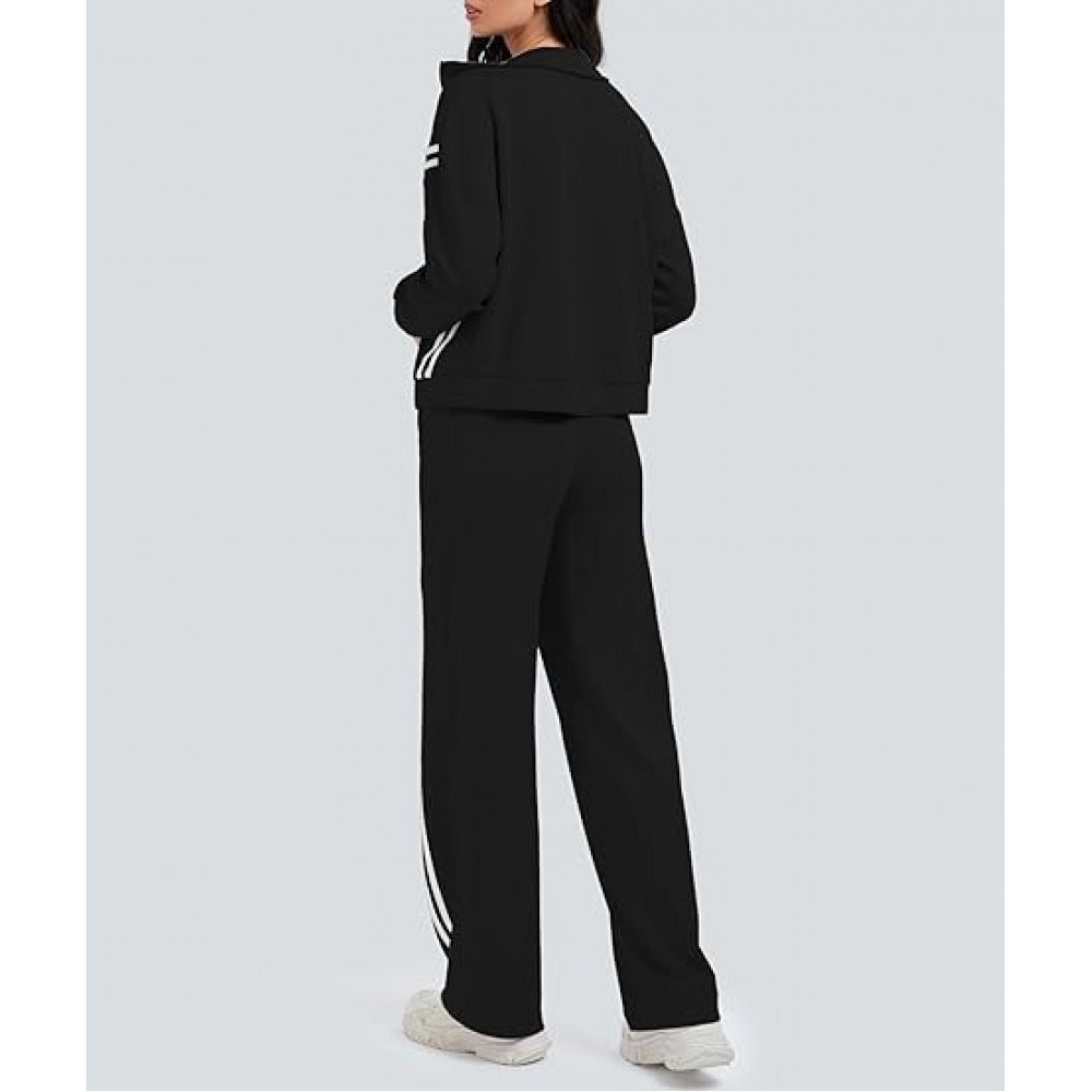 Women's 2 Piece Outfits Zip Up Sweatshirt Contrast Striped Wide Leg Sweatpants Suits Jogger Travel Matching Set