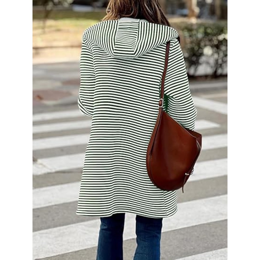 Women's Color Block Striped Hooded Cardigan Sweaters Button Down Long Coatigan Jackets with Pockets